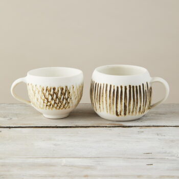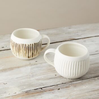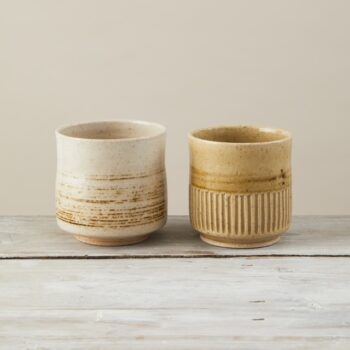 White Speckled Cup with grooved lines